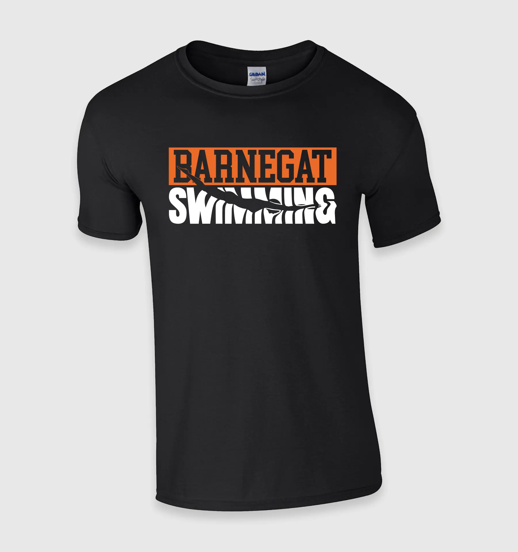Show your team spirit with this bold Barnegat Swimming t-shirt! This design features “Barnegat” in bright orange block letters, paired with “Swimming” in sleek white text beneath, incorporating a dynamic wave effect for a striking visual impact. Perfect for athletes, fans, and supporters alike, this shirt is crafted from soft, durable material to keep you comfortable at meets, practice, or cheering from the stands. Represent the Barnegat High School Swim Team in style and pride!